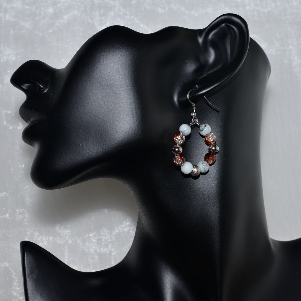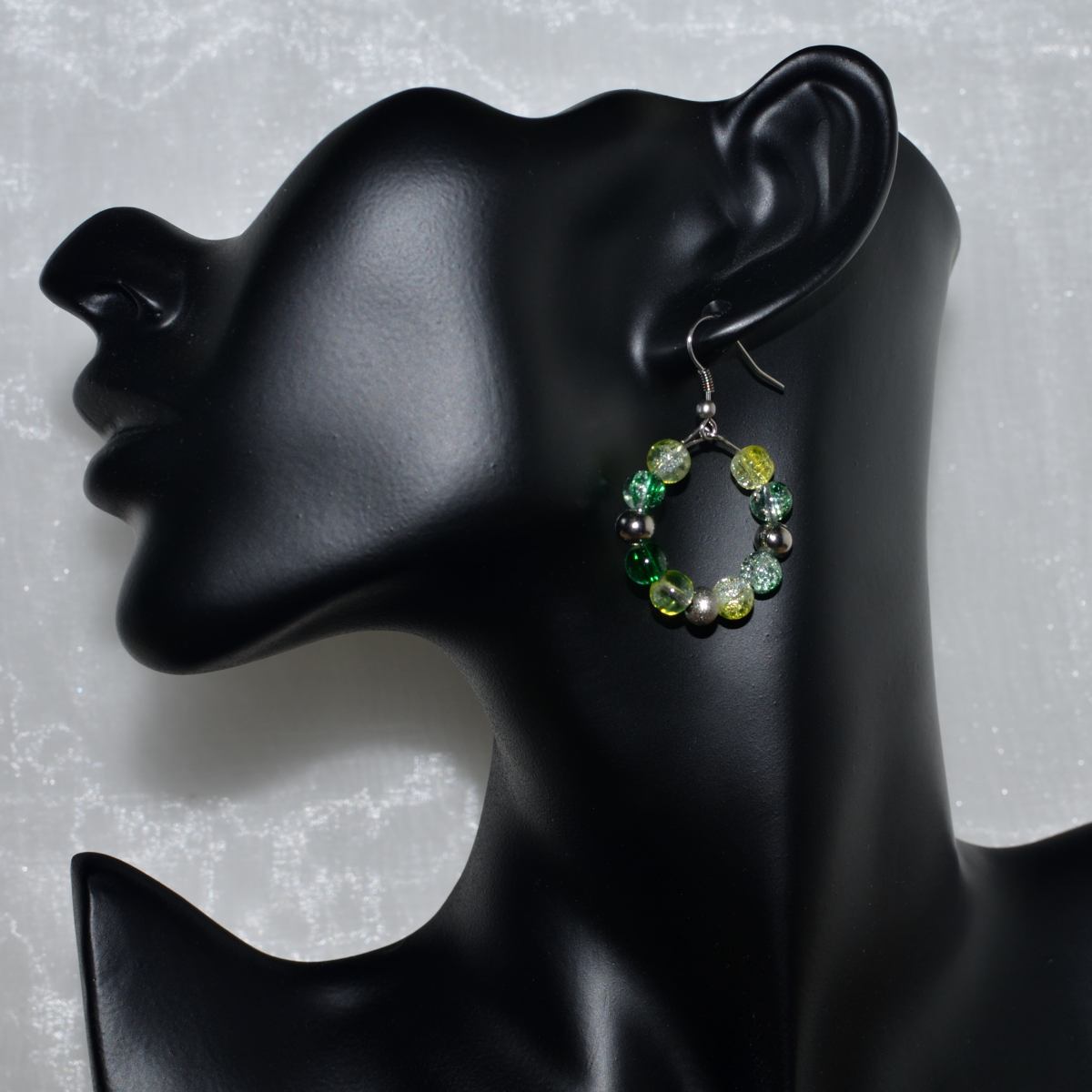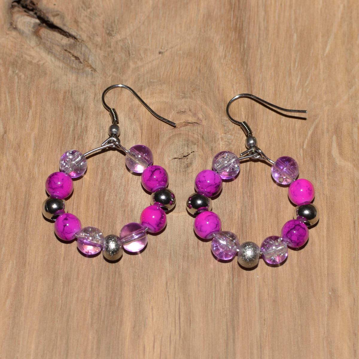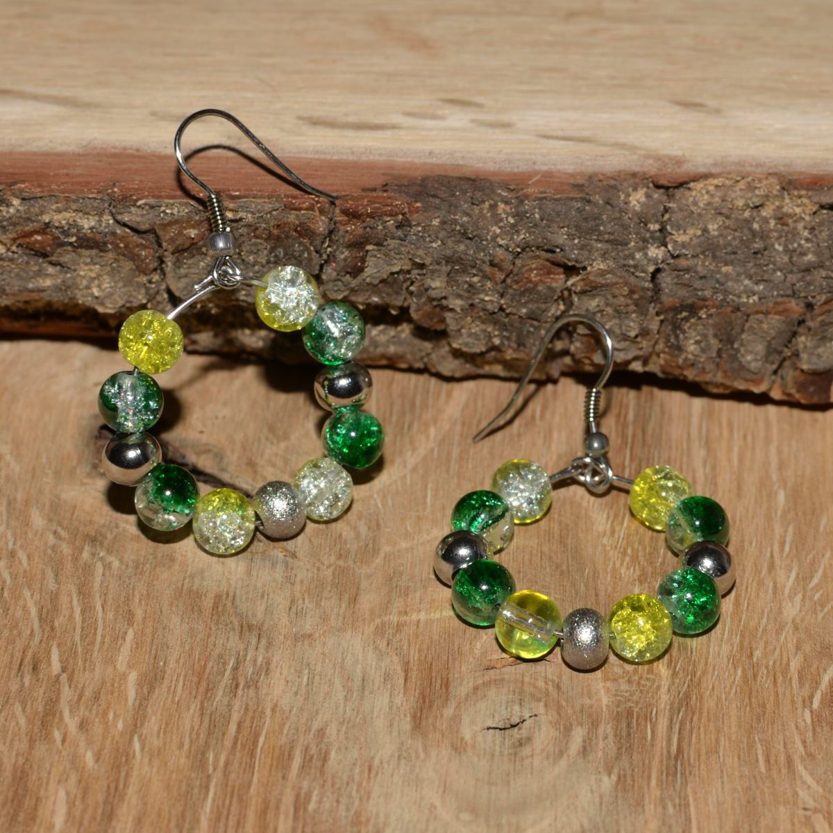 Creolen mit 11 Perlen und Ohrhaken aus Edelstahl / Glas in Deiner Wunschfarbe