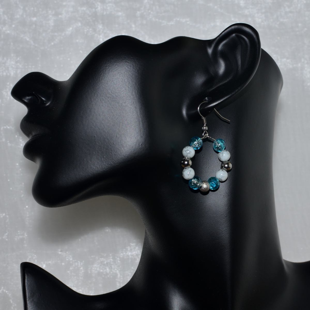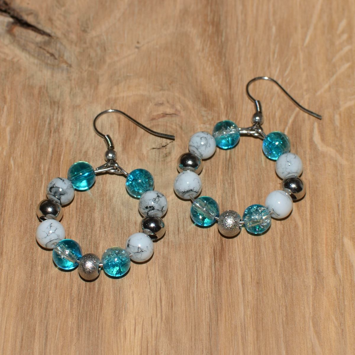 Bei diesen Creolen mit Ohrhaken sind zwei Glasperlen und eine Edelstahlperle abwechselnd angeordnet, bis sich ein Ring ergibt. Gesamt befinden sich elf Perlen an einem Ohrring. Die beiden Farben für die Glasperlen kannst Du frei aus über 50 traumhaft schönen Farben wählen. Gib ganz einfach Deinen Farbwunsch für die beiden Glasperlen an (1. Perle oben, 2. Perle unten) und gestalte Dir Deine individuellen Perlenring Creolen.